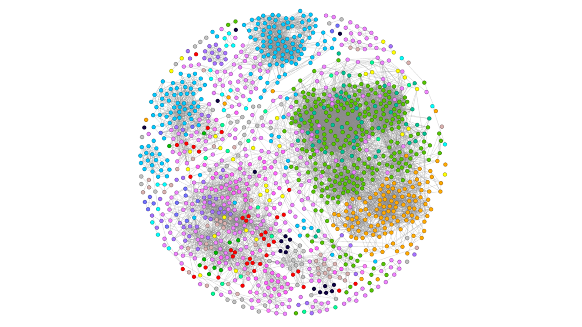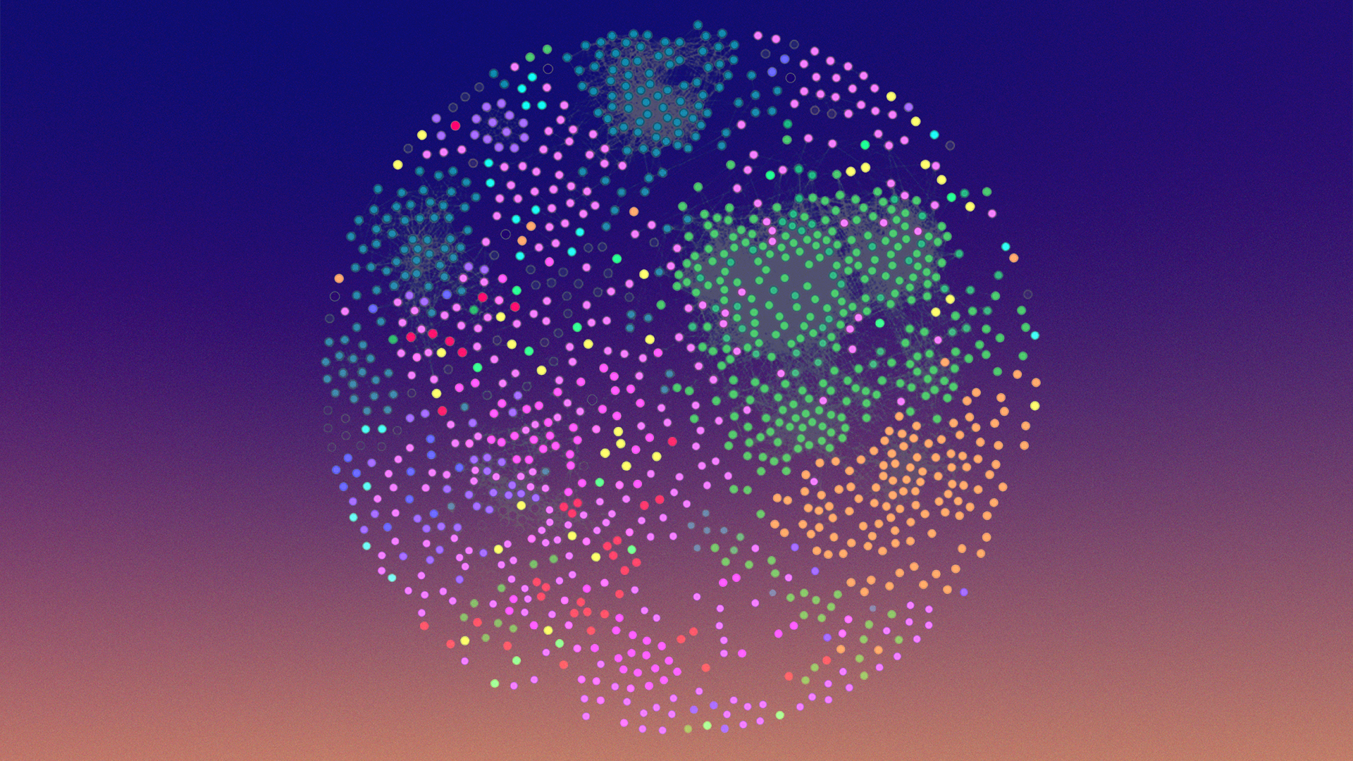 Figure 2. The image illustrates more than 1,000 non-canonical amino acid monomers and their chemical structure relatedness. Each node is an amino acid colored by its nearest neighbor and is connected by edges signifying Tanimoto similarity >0.5.